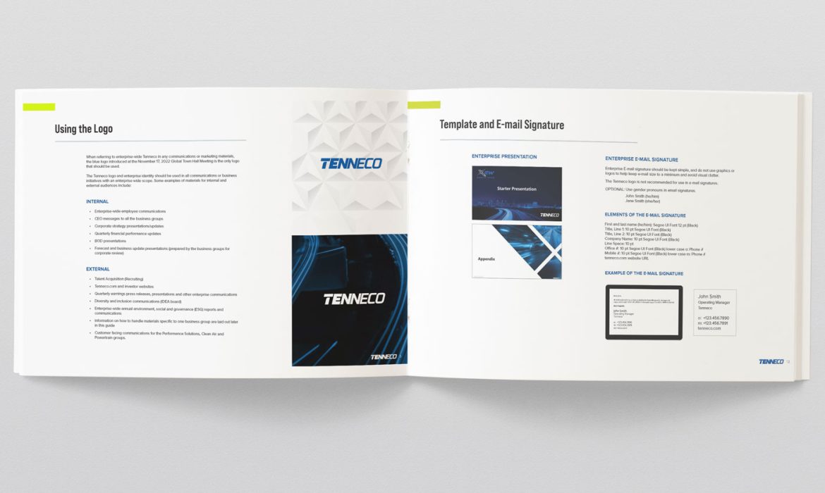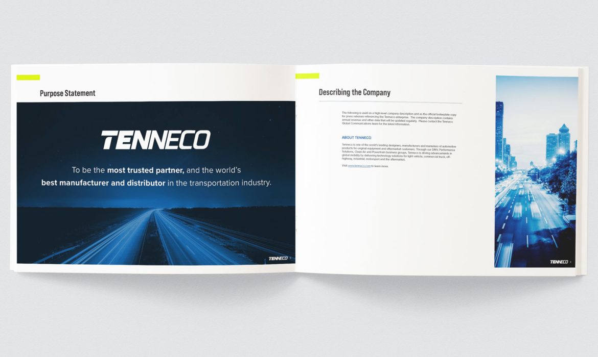 As the lead designer, I developed and governed a comprehensive global brand system for Tenneco, establishing a unified visual language across marketing, product, and corporate communications.